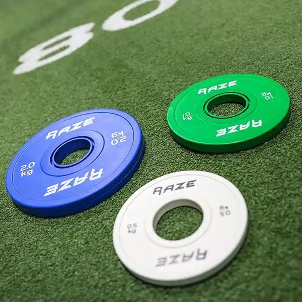 RAZE your PB game with our rubber coated RAZE plates. Designed and produced to the IWF standard each plate has a 50.4mm centre that will fit any standard Olympic barbell. The plates offer weight increments of either 0.5G, 1.5kg or 2KG that allow for progressive overload to safely improve your strength training.